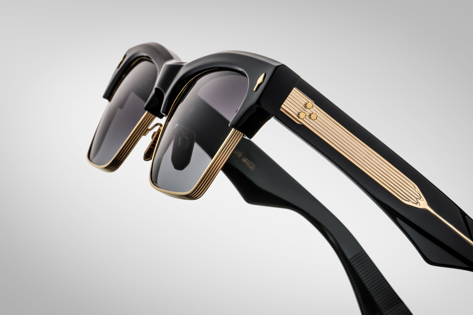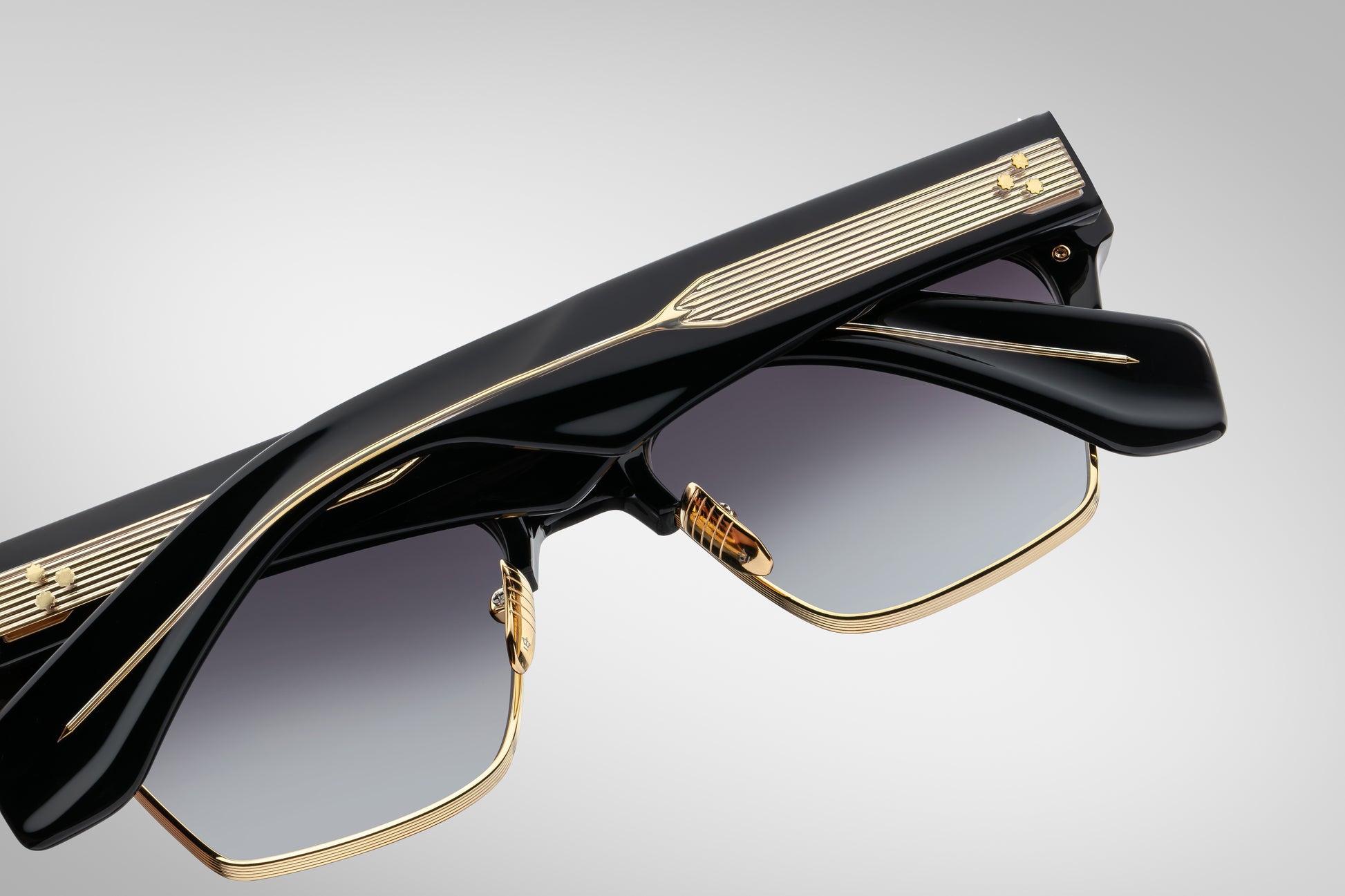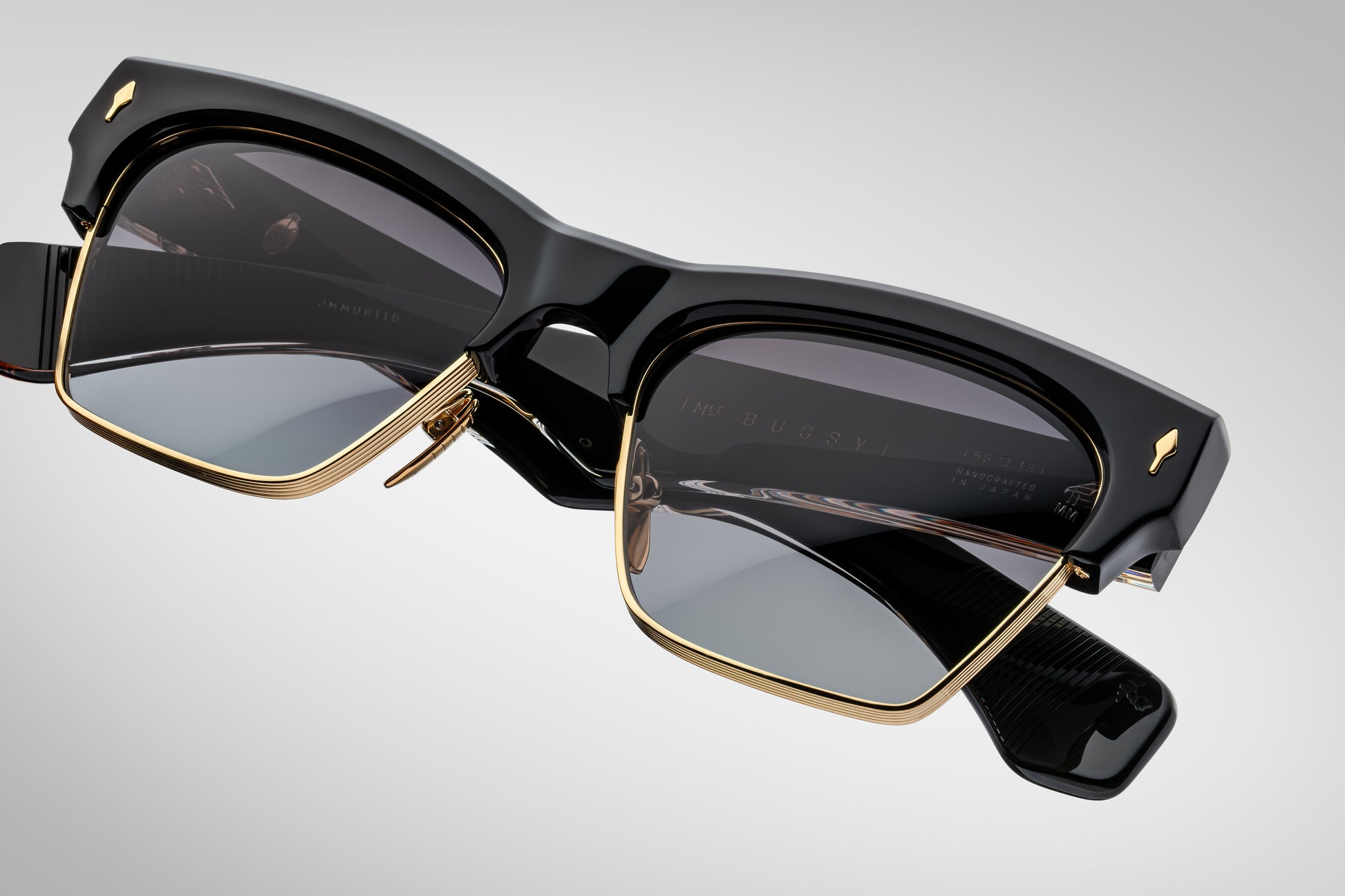 Classici della metà del secolo con una vestibilità media, realizzati a mano con un elegante bordo della lente in titanio e uno scultoreo monobrow e aste in acetato, integrati da esclusivi perni anteriori a punta di freccia e dettagli in metallo lucido.