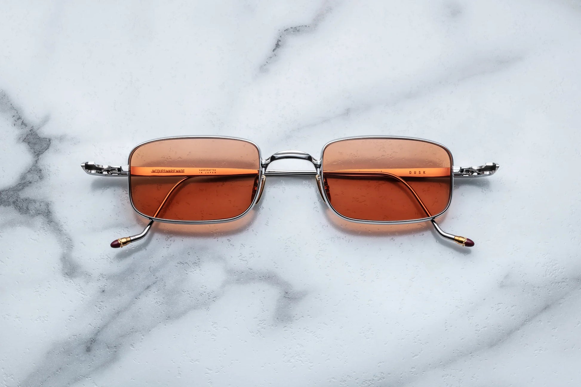 In stile micro in titanio ispirato alla metà degli anni '90 con vestibilità media, dotato di bordi semilunari, cerniere nascoste e aste scultoree con punte epossidiche dipinte a mano.